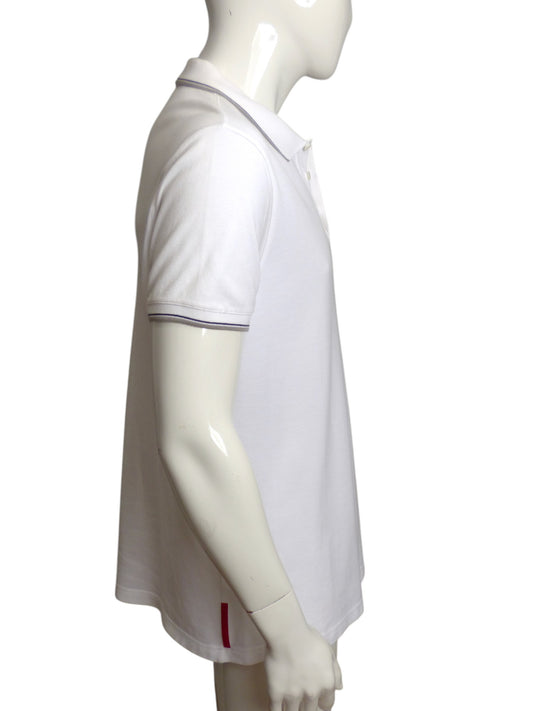 PRADA-White Cotton Pique Polo Shirt, Size 2XL