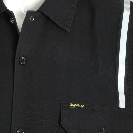 SUPREME- NWT Black Reflective Stripe S/S Work Shirt, Size Large