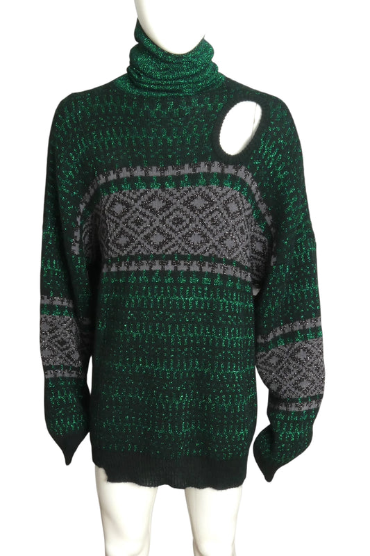 RAF SIMONS- 2019 Metallic Asymmetric Turtleneck Sweater, Size XS