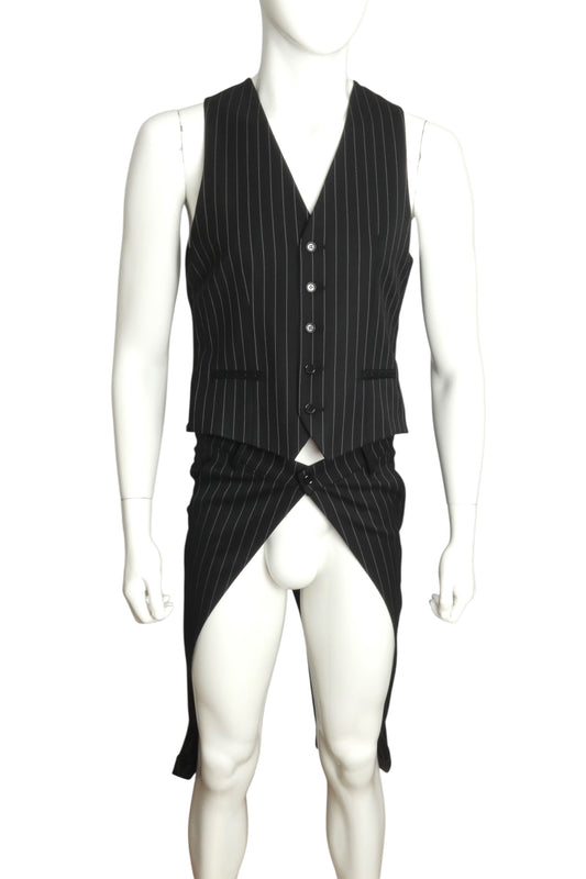 MOSCHINO COUTURE- 2018 Black Pinstripe Long Vest, Size XS
