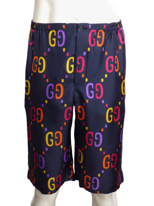 GUCCI- NWT 2022 Silk Logo Print Lounge Shorts, Waist-32
