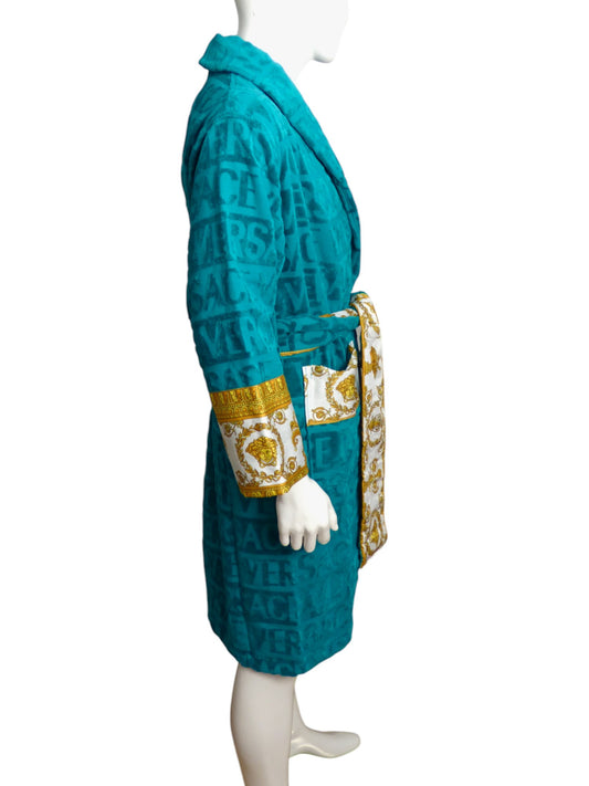 VERSACE- NWT 2023 Teal Terry & Brocade Robe, Size Medium