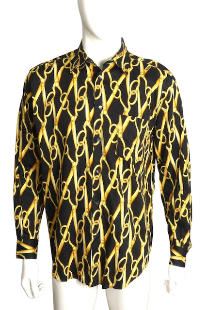 MOSCHINO- 1996 Scissor Print Cotton L/S Shirt, Size Large
