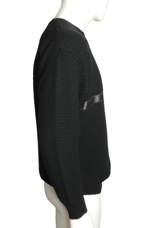 PIERRE CARDIN- 1980s Black Wool & Leather Sweater, Size Large