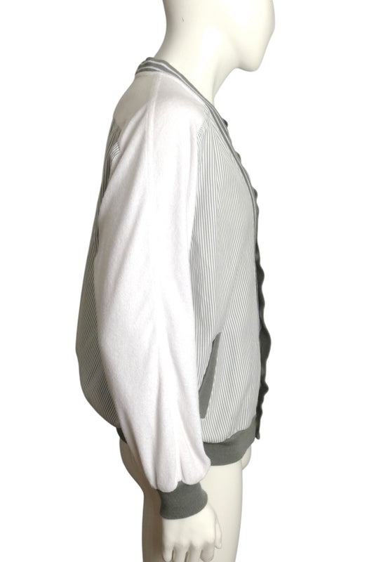 PIERRE CARDIN- 1980s Cotton Stripe & Terry Cardigan, Size Large
