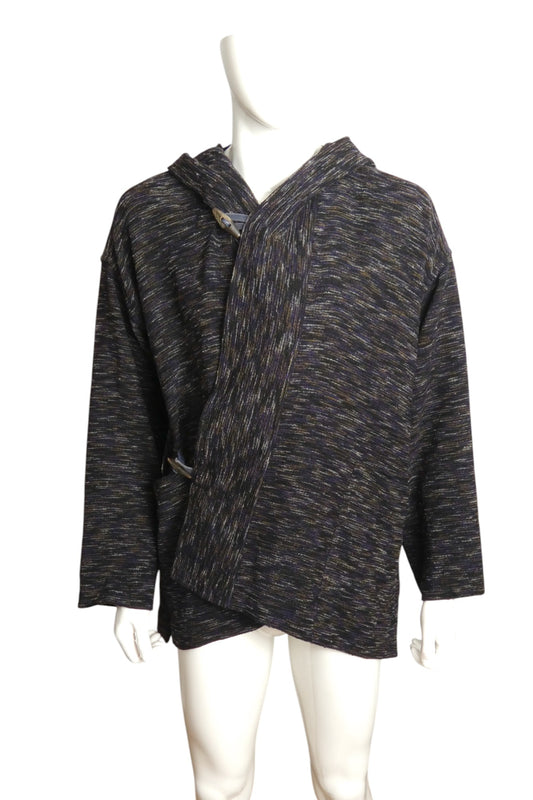 PLANTATION - 1980s Navy Wool Hooded Sweater Jacket, Size Medium