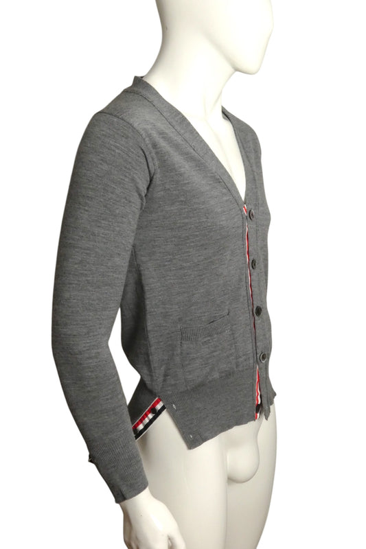 THOM BROWNE- Grey Wool Hector Cardigan Sweater, Size Small