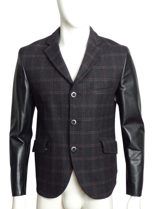 JUNYA WATANABE- 2016 Wool Plaid & Leather Blazer, Size Medium