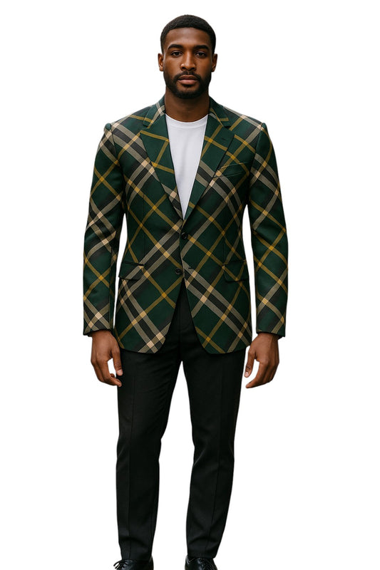 BURBERRY- NWT 2024 Green Wool Plaid Blazer, Size XL