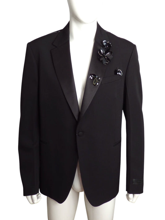 VERSACE- NWT 2023 Black Wool Beaded Tuxedo Blazer, Size 2XL