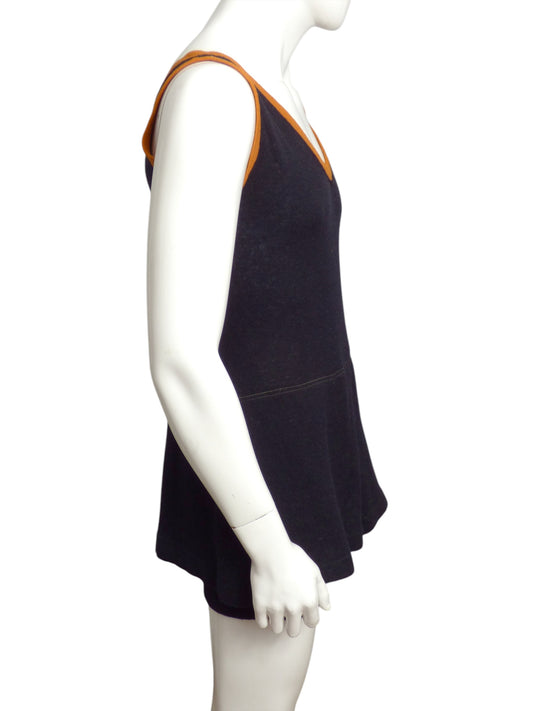AS IS 1920s Black & Orange Wool Swimsuit, Size Large