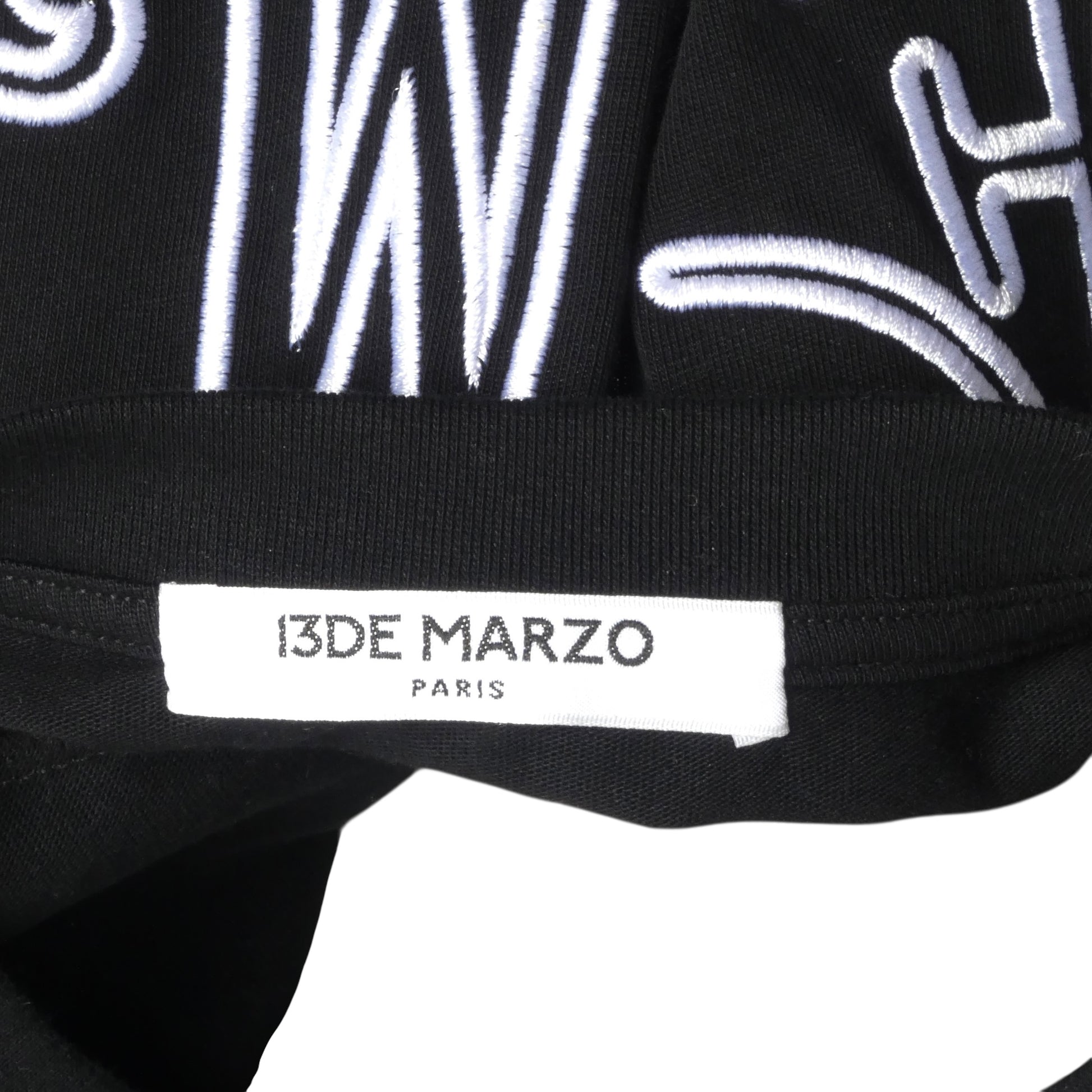 Description: This black cotton t-shirt features a crisp white brand logo embroidered on the chest and a bold embroidered design across the back. The highlight? A charming stuffed teddy bear attached by buttons, creating a playful surprise—remove the bear to reveal a cool embroidered chalkline underneath. Perfect for adding a fun twist to your casual wardrobe.
