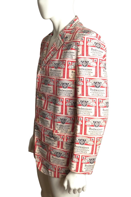 Description: Step back into the groovy '70s with this rare Budweiser cotton blazer! Featuring classic notched lapels, three front buttons, and handy flap pockets, it’s perfect for rocking retro style with a playful twist. A must-have collectible that’s as bold as your taste!