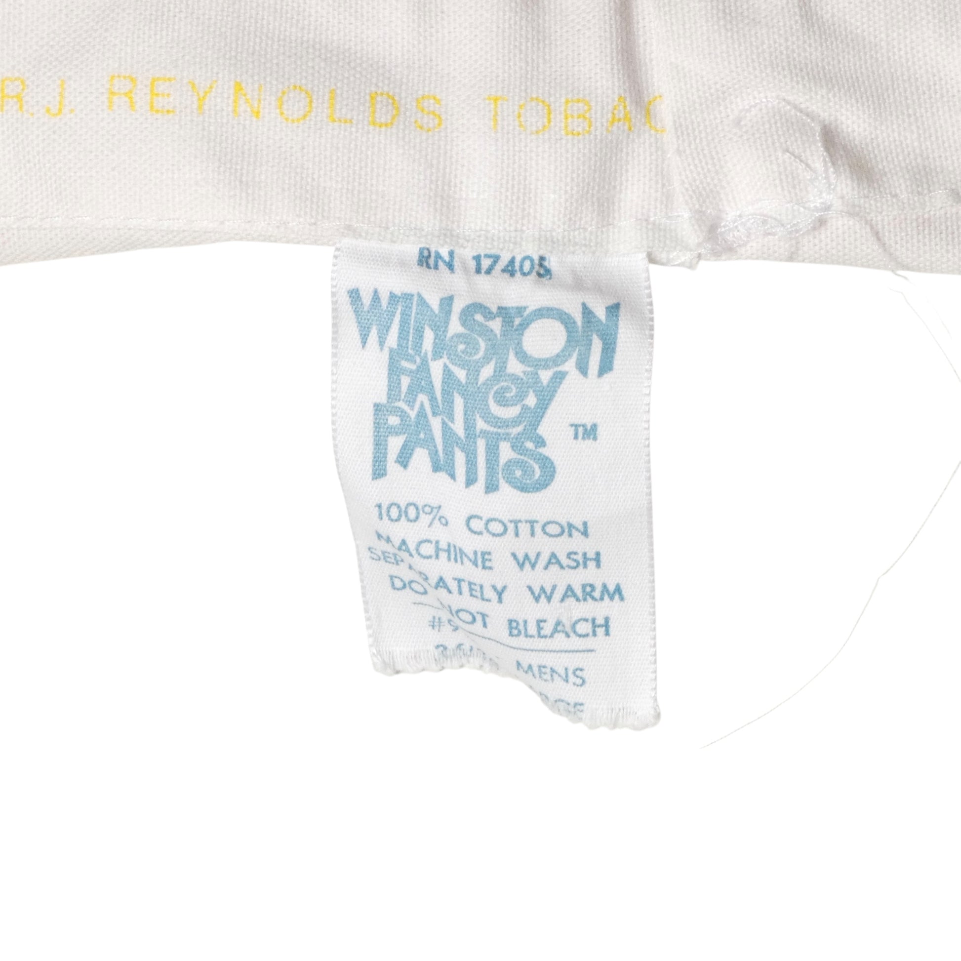 Description: Step into vintage rebellion with these rare 1972 Winston Salem promotional bell bottom pants—a genuine piece of 1970s pop-art history. Crafted from soft cotton, these novelty lounge pants boldly showcase the iconic Winston cigarette box and the era's cheeky slogan "How good it is" across the fabric. Part of the legendary "Winston Fancy Pants" promotional campaign, these flared legs and drawstring waist embody the fearless spirit of the decade. A true collectible for those who appreciate advertising nostalgia and retro style with attitude. Size Large. Wear the past unapologetically.