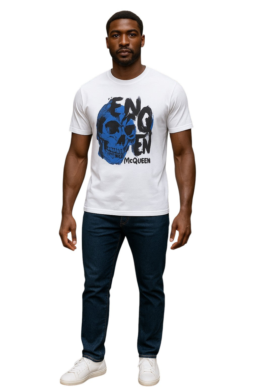 Description: Experience the captivating this t-shirt. Featuring a striking blue skull and the iconic "McQueen" on a pure white background, this cotton t-shirt is a true masterpiece. With the original store tags attached and a price of just $395.00, this shirt is a must-have for any fashion enthusiast. Don't miss out on adding this statement piece to your wardrobe today!