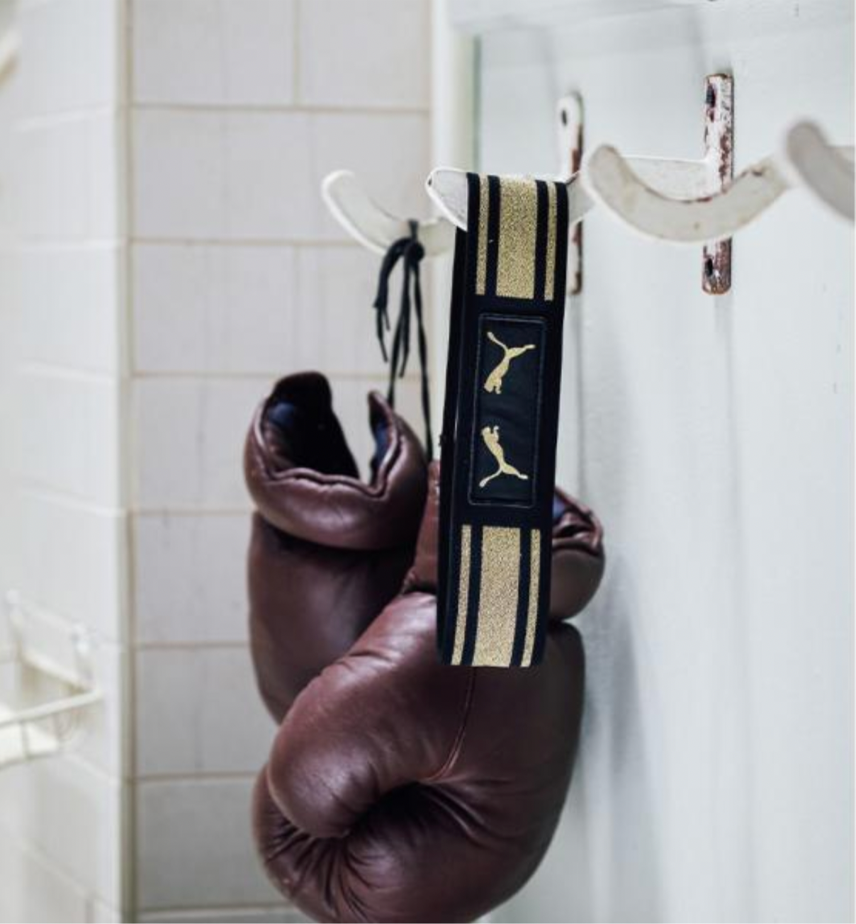 Description: Step up your style game with the 2019 Balmain x Puma Metallic Stripe Headband. This unisex accessory features bold gold and black striped elastic, topped with a sleek leather patch embossed with “Balmain, Puma” in gold-tone metal. The front proudly displays the iconic Puma logo, adding a sporty edge to a high-fashion look. Perfect for adding a playful yet chic touch to any outfit while keeping hair effortlessly in place.