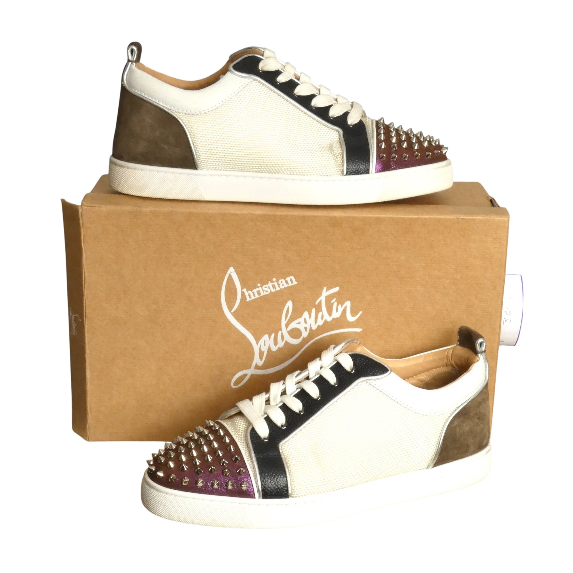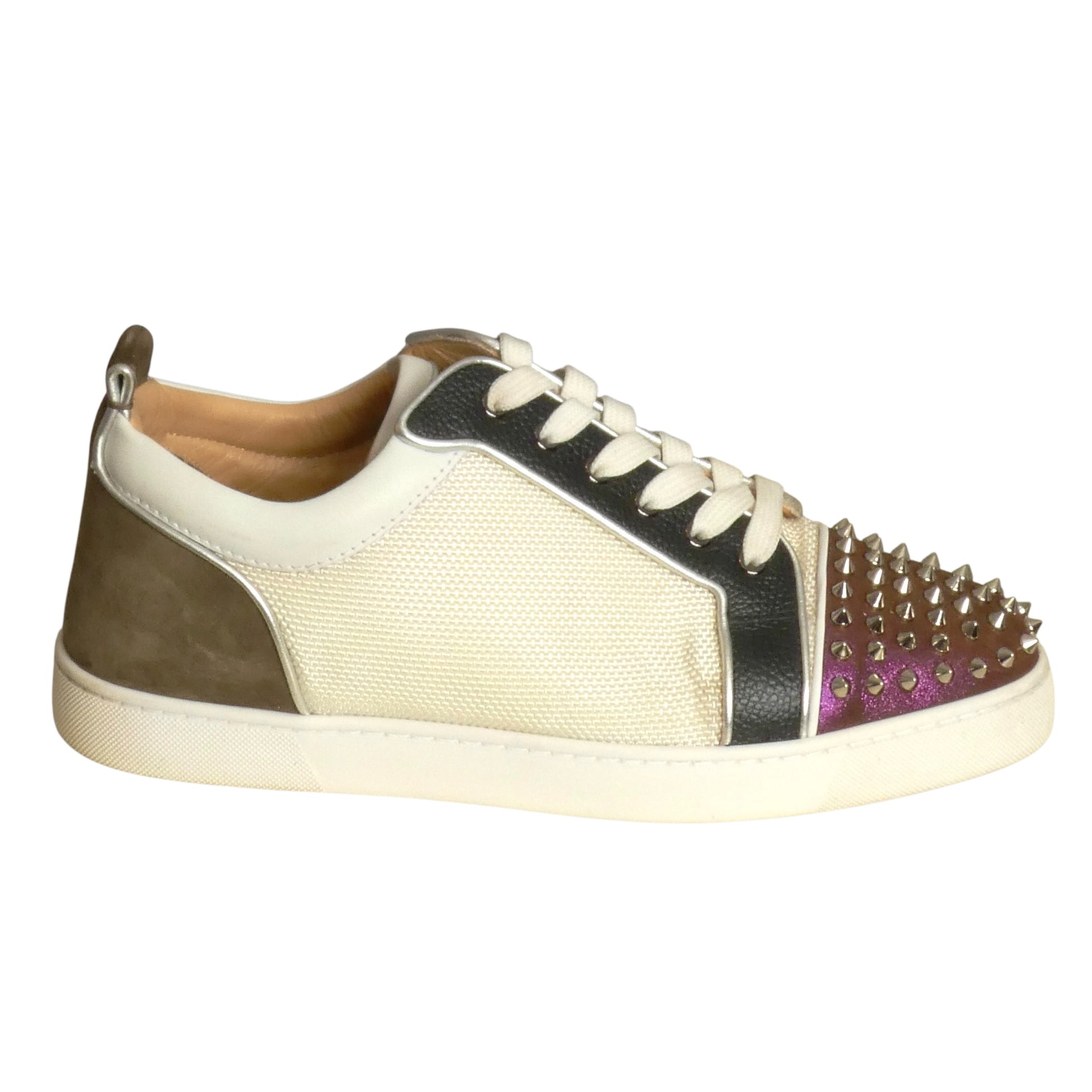 Description: Step up your sneaker game with Christian Louboutin’s Louis Junior Spikes Orlato! These smooth calf leather kicks sport the signature spiked toe for that edgy vibe. With a sleek low-top shape and classic lace-up design, they’re perfect for adding some daring flair to your look. Durable rubber soles keep you comfy all day long. Still in the original box.