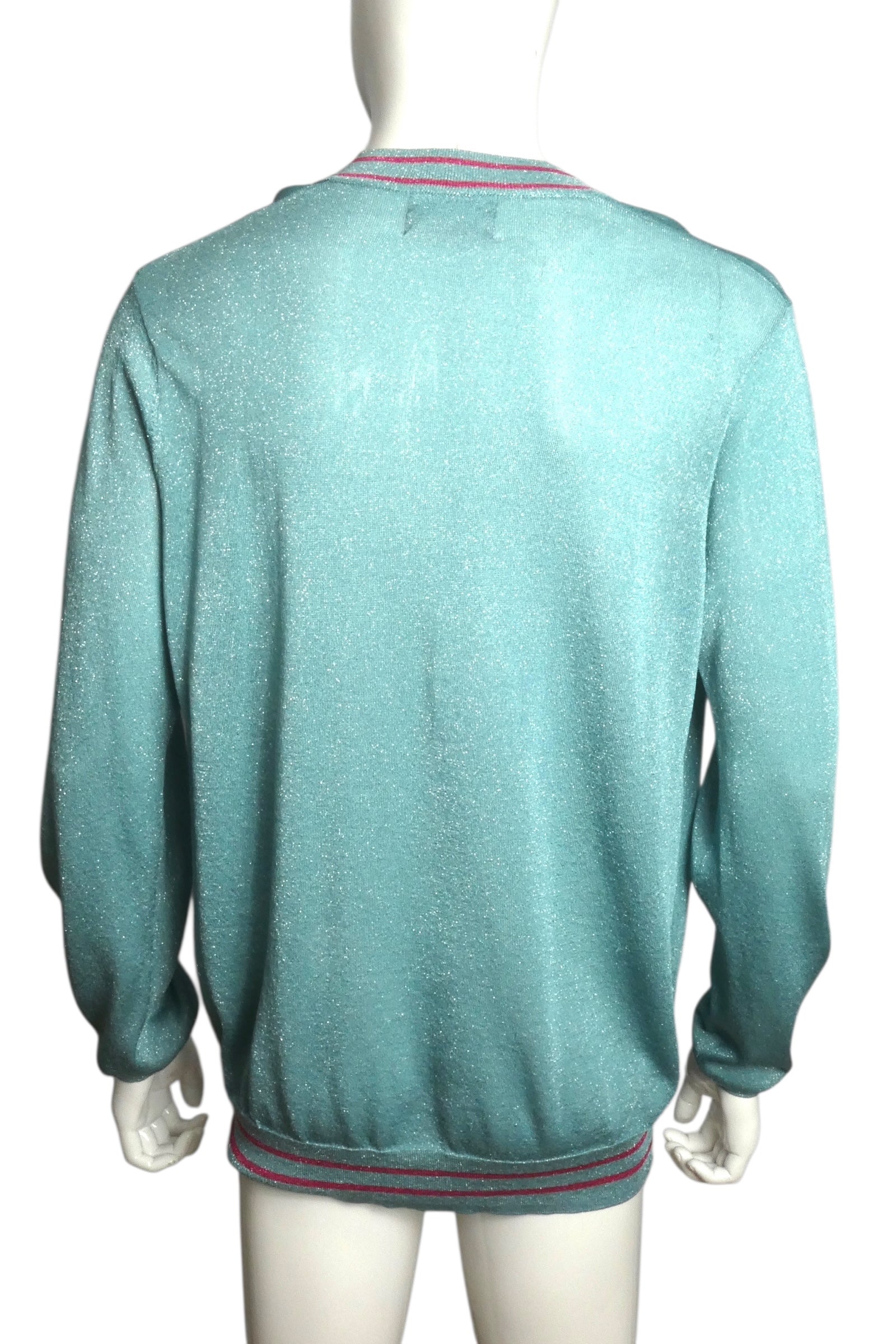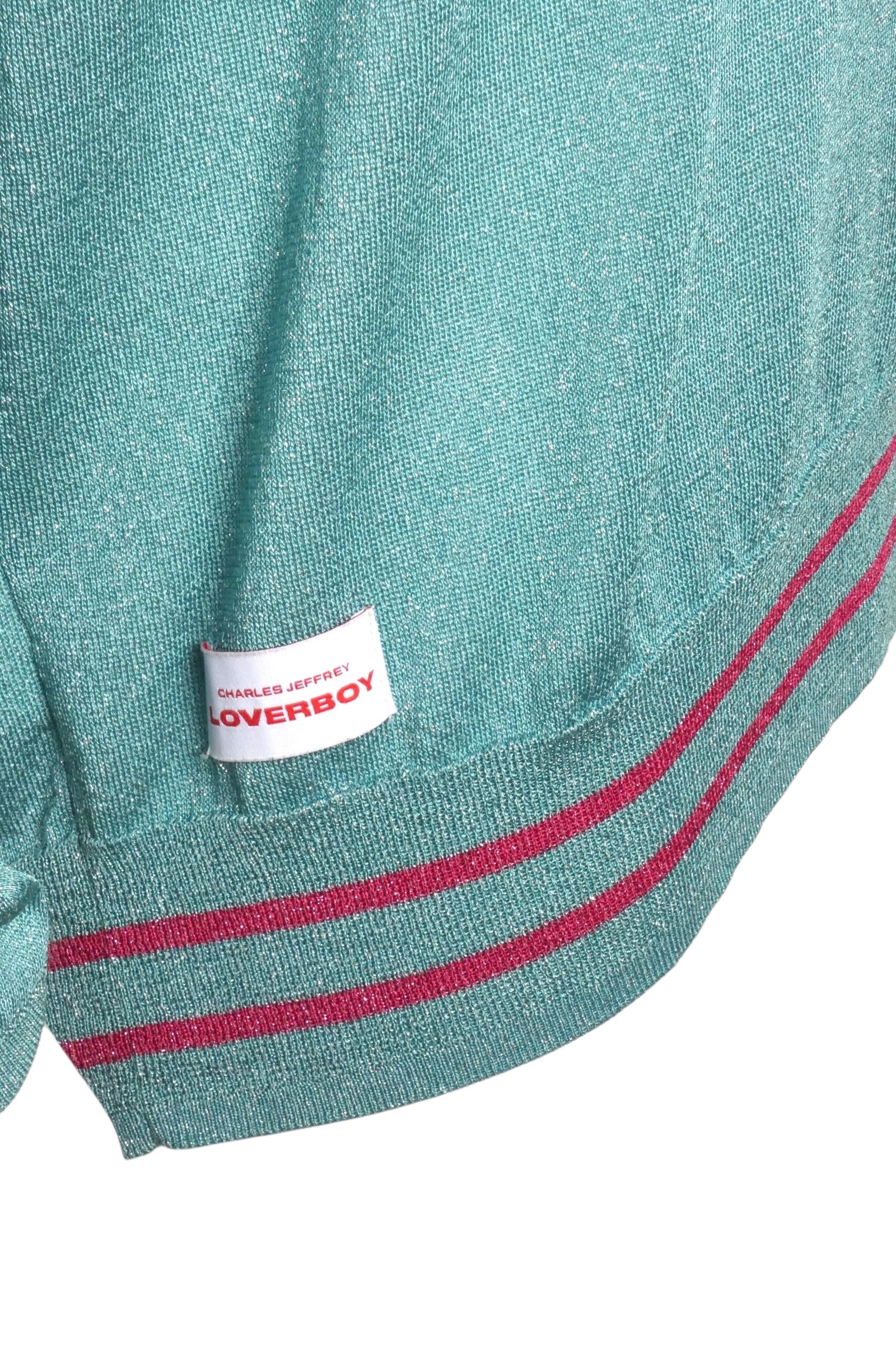 FRED PERRY X CHARLES JEFFREY LOVERBOY- 2021 Lurex V-Neck Sweater, Size Large