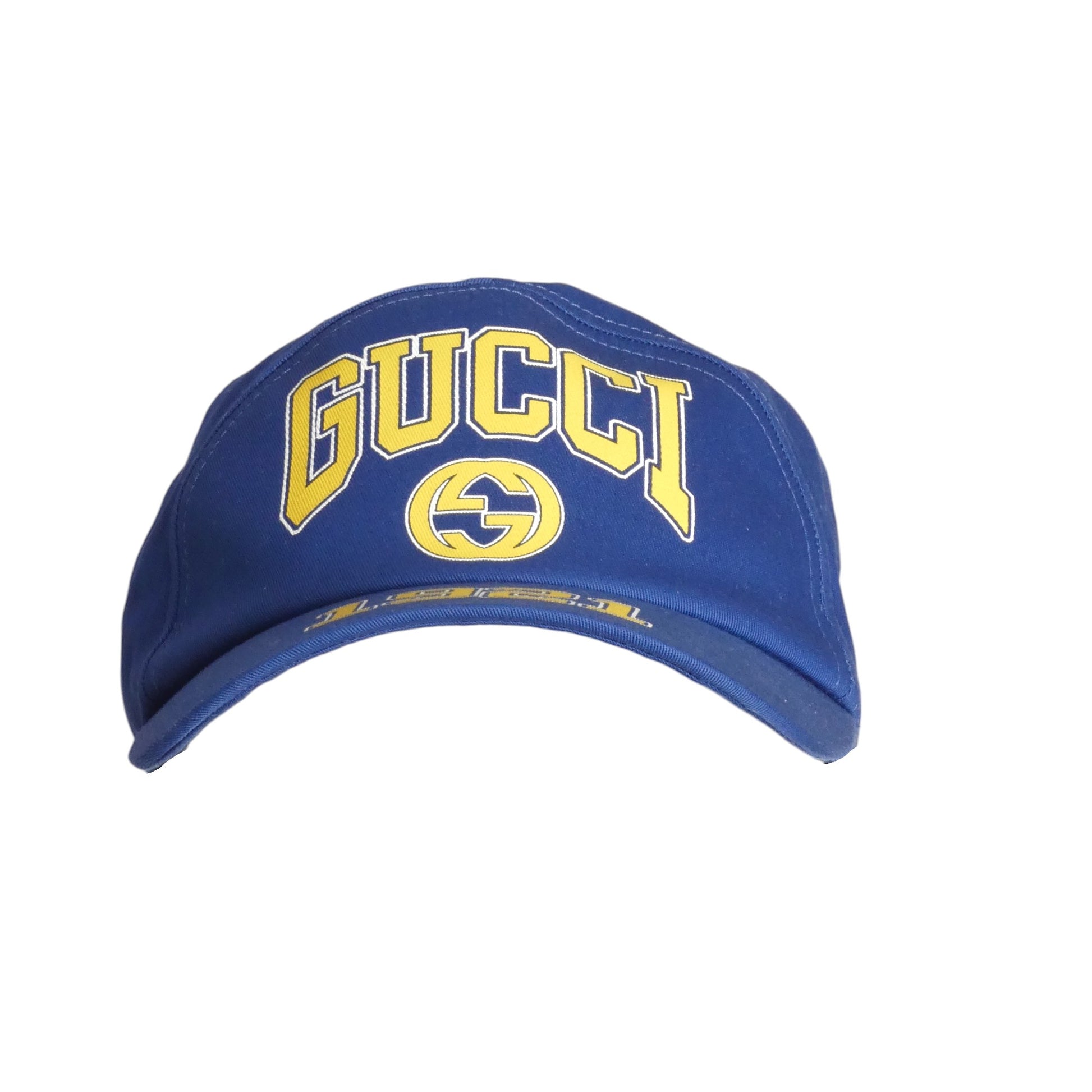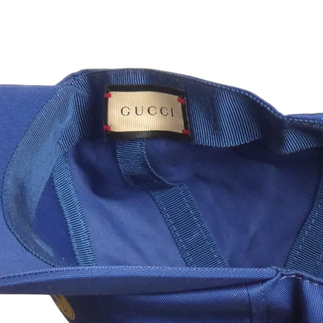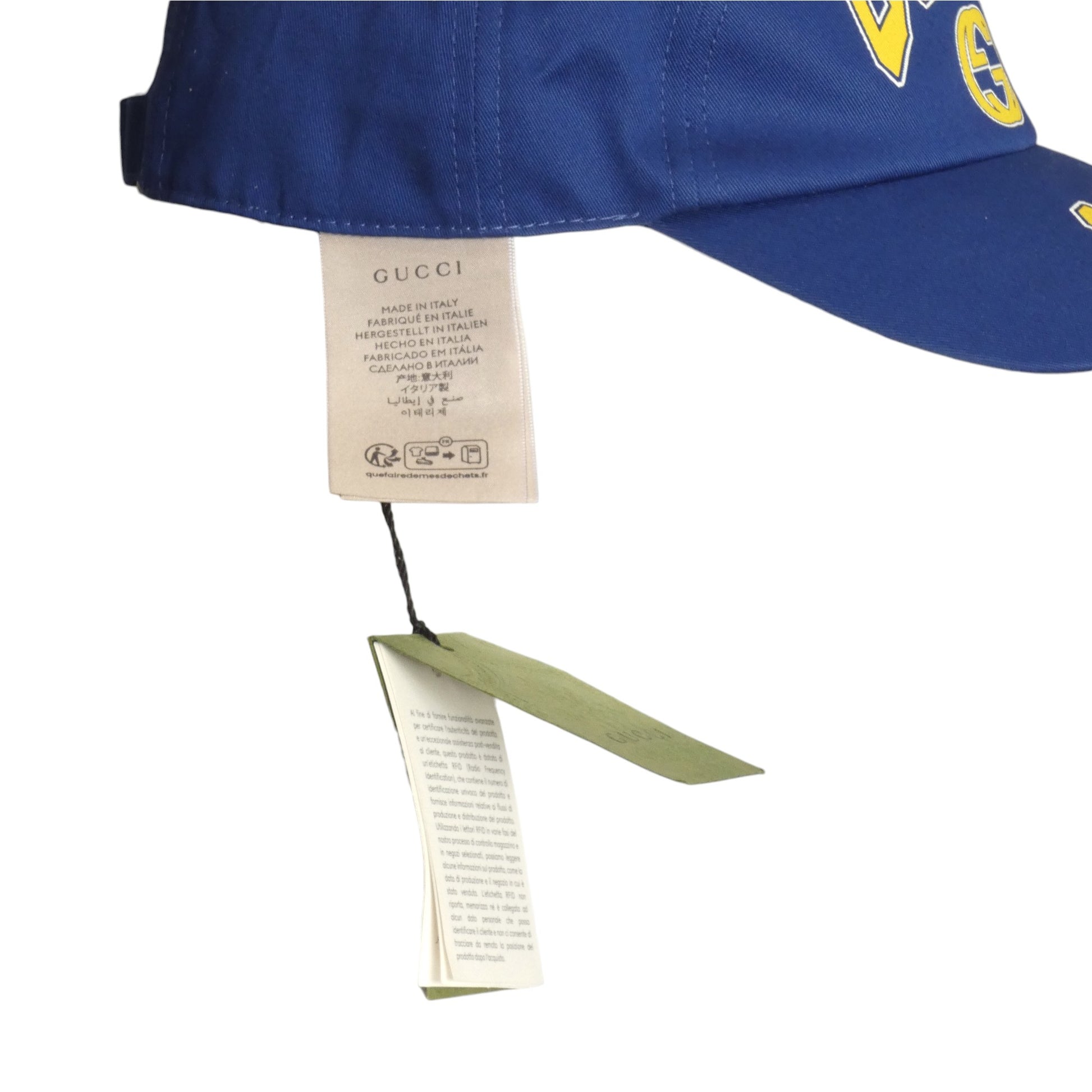 Description: Upgrade your casual look with the Gucci Blue Baseball Cap, made from high-quality cotton twill for ultimate comfort. This eye-catching cap showcases a bold yellow screen-printed design, injecting a splash of color into any ensemble. The adjustable strap at the back guarantees a snug fit for all head sizes, making it a flexible accessory for any event. With the original store tags still attached, this cap is not only a stylish addition to your wardrobe but also a must-have for dedicated Gucci fans. Seize the opportunity to own a luxurious piece that seamlessly blends style and practicality.