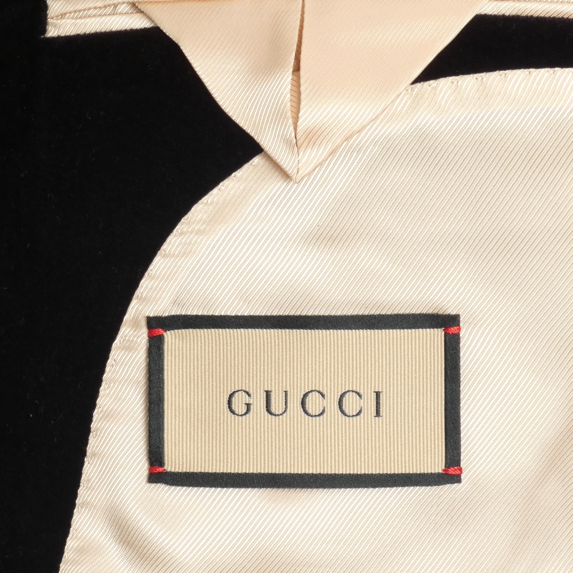 Description: Step into the spotlight with this stunning purple tuxedo jacket from Gucci’s Fall 2022 runway collection. Featuring bold black velvet lapels and sleek double-breasted buttons, it’s perfect for anyone ready to make a statement. With original store tags still attached, this size Large piece blends classic charm and modern flair effortlessly. Get ready to turn heads and dance through the night in style!