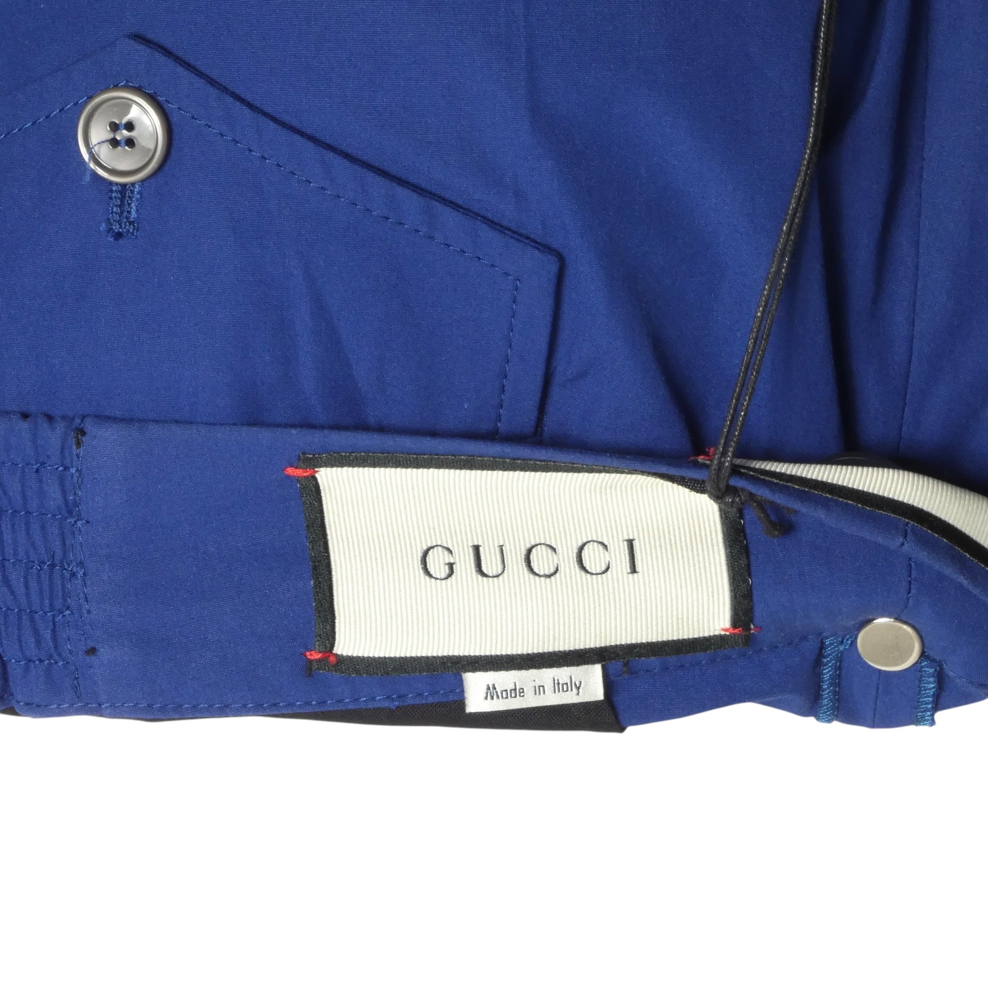 Description: Make waves in these Gucci cobalt blue cotton poplin shorts from 2019. The vibrant hue demands to be seen, while the partially elasticated waistband balances comfort with tailored sophistication. Inset side pockets and a back pocket with flaps deliver practical storage without sacrificing the polished silhouette. Still wearing original store tags, these shorts are a fearless choice for those who understand that true style means embracing bold color with unwavering conviction.