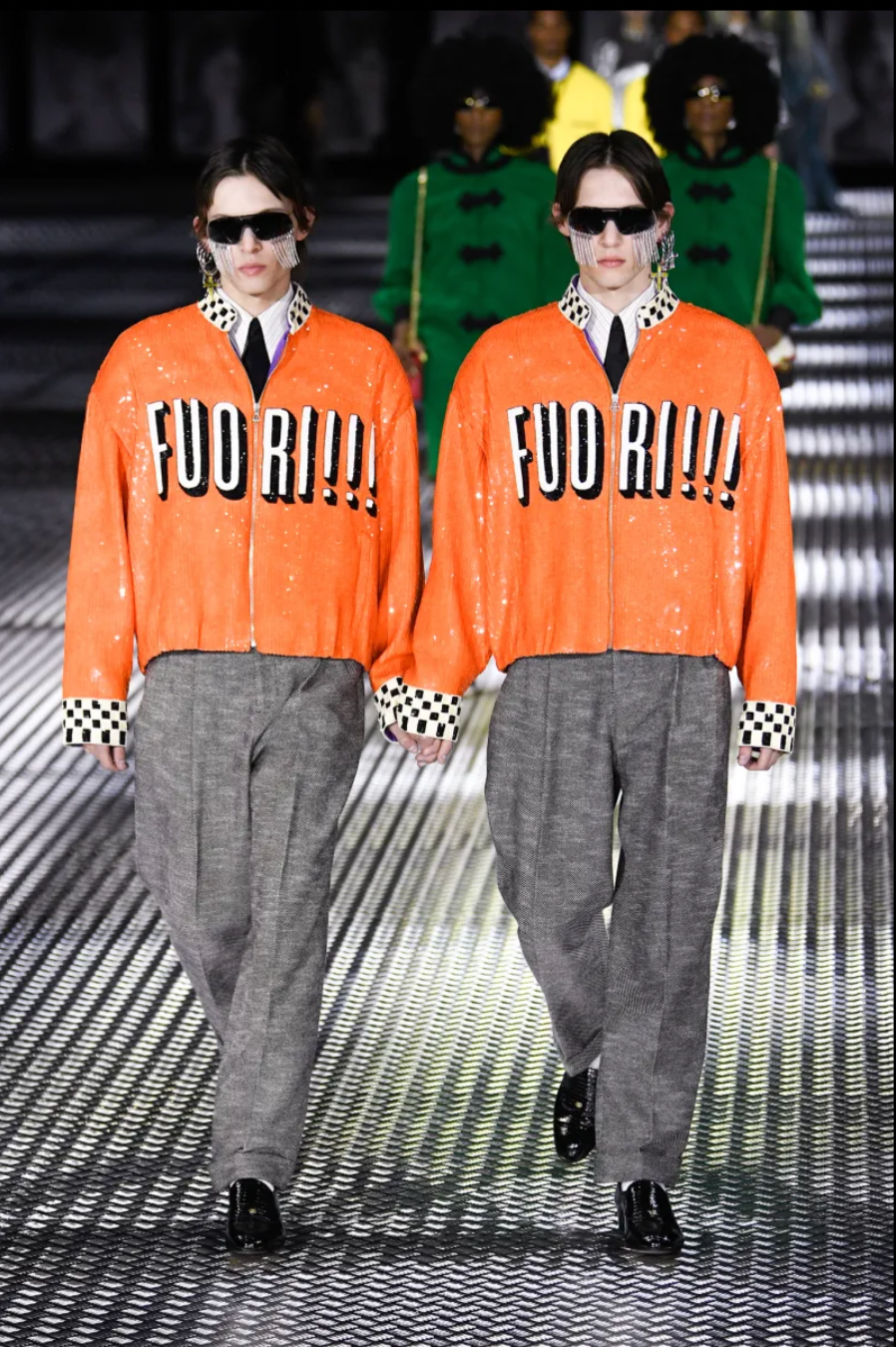 Description: Celebrate a piece of history with this vibrant 2023 Gucci wool sweater in bold orange. Inspired by Fuori!, Italy’s pioneering LGBTQ+ liberation movement and its trailblazing magazine from the early ’70s, this size Large sweater merges activism with style. Brand new with original store tags, it’s perfect for those who love fashion with a story and a splash of playful rebellion. Wear a statement that’s both cozy and culturally iconic!