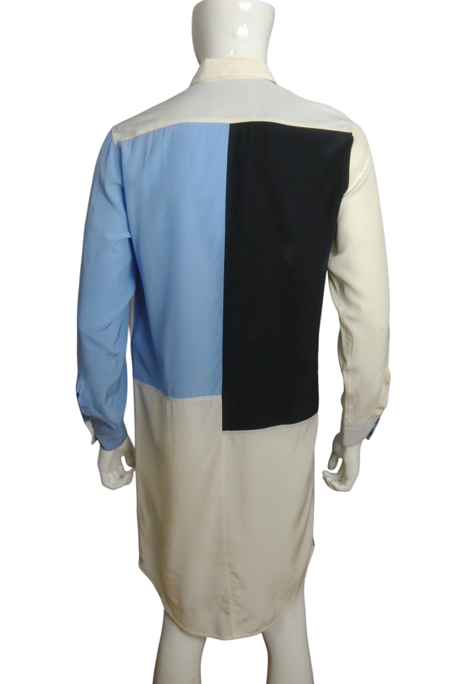 Description: This Jil Sander tunic is a masterclass in understated luxury. Crafted from 100% silk, the colorblock design features the designer's signature patchwork construction—a clever switching of hues that creates visual intrigue without screaming for attention. The relaxed, kaftan-inspired silhouette drapes beautifully, making it equally at home layered over basics or styled as a standalone statement piece. A timeless piece from the archives that proves good design never goes out of style.