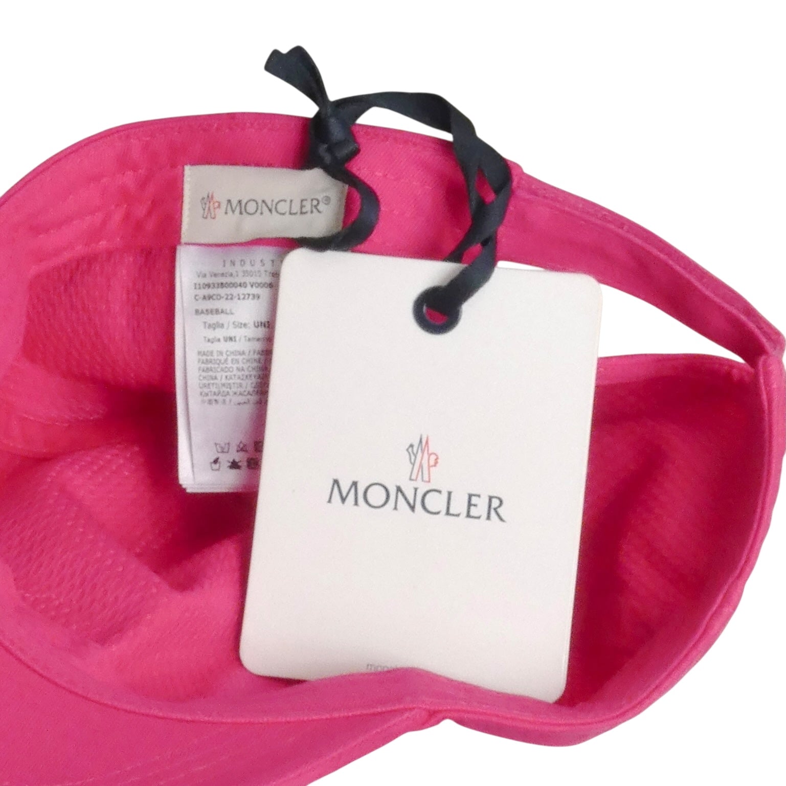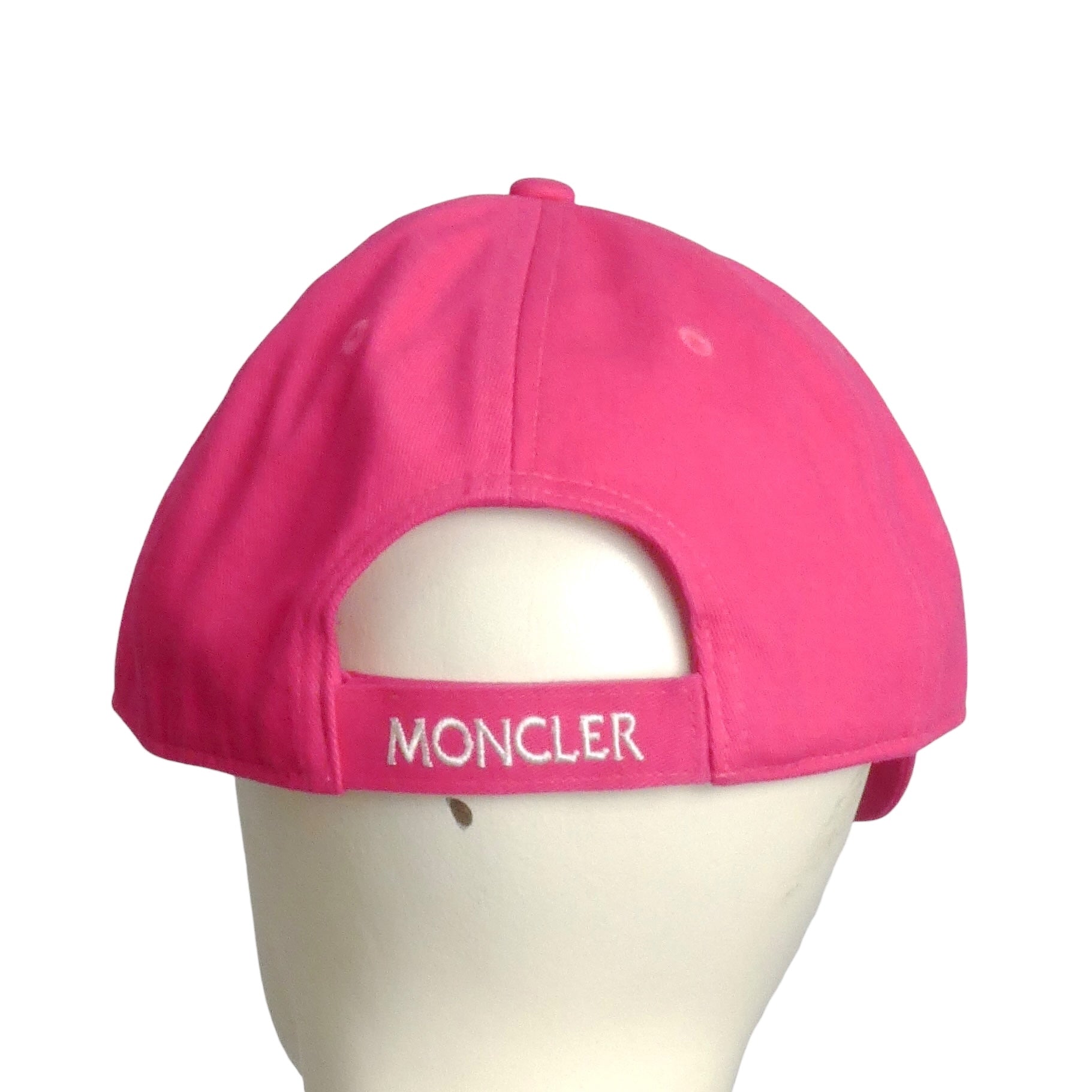 Description: Rock that vibrant fuchsia with Moncler's classic baseball cap—a playful pop of color that doesn't compromise on style. Crafted from soft cotton twill, this cap features the brand's iconic logo patch front and center, plus an adjustable back strap embroidered with "Moncler" for that authentic touch. Still sporting original store tags, it's ready to elevate your casual rotation. Whether you're shielding from the sun or just making a statement, this cap brings effortless cool to any outfit.