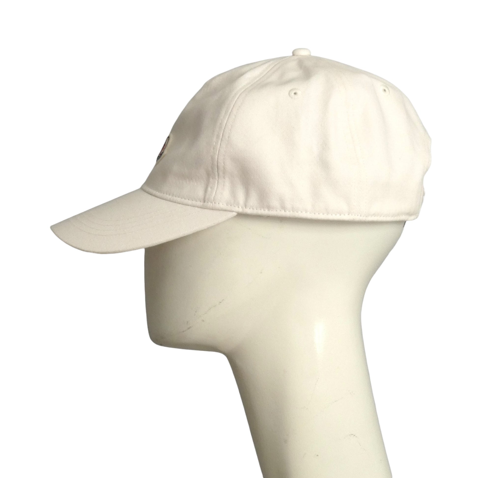 Description: Clean, crisp, and undeniably cool—Moncler's white cotton twill baseball cap is your new go-to accessory. The signature logo patch commands attention on the front, while the adjustable back strap keeps things snug and stylish with its embroidered "Moncler" branding. Wrapped in original store tags, this cap is fresh and ready to roll. Perfect for sunny days, casual vibes, or whenever you need a dash of understated luxury. Throw it on and own the moment.