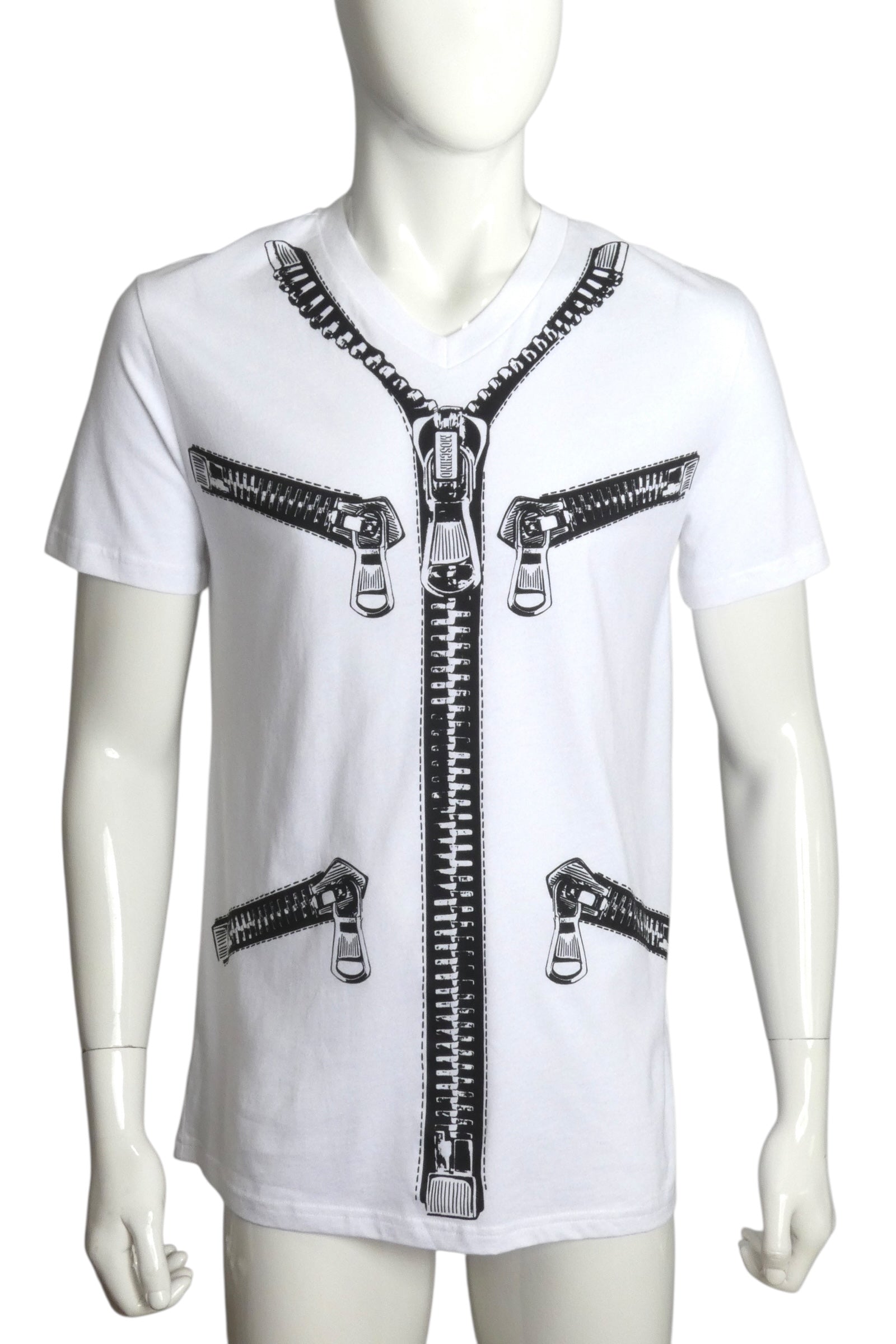 Description: Straight from the Spring/Summer 2020 Moschino Couture collection, this graphic tee features the brand's iconic trompe-l'œil zipper print—a cheeky optical illusion that's been a Moschino signature since the '90s. Cut in a comfortable medium, it arrives with original store tags still attached, making it a pristine addition to any fashion-forward wardrobe. Pure Moschino wit wrapped in cotton.