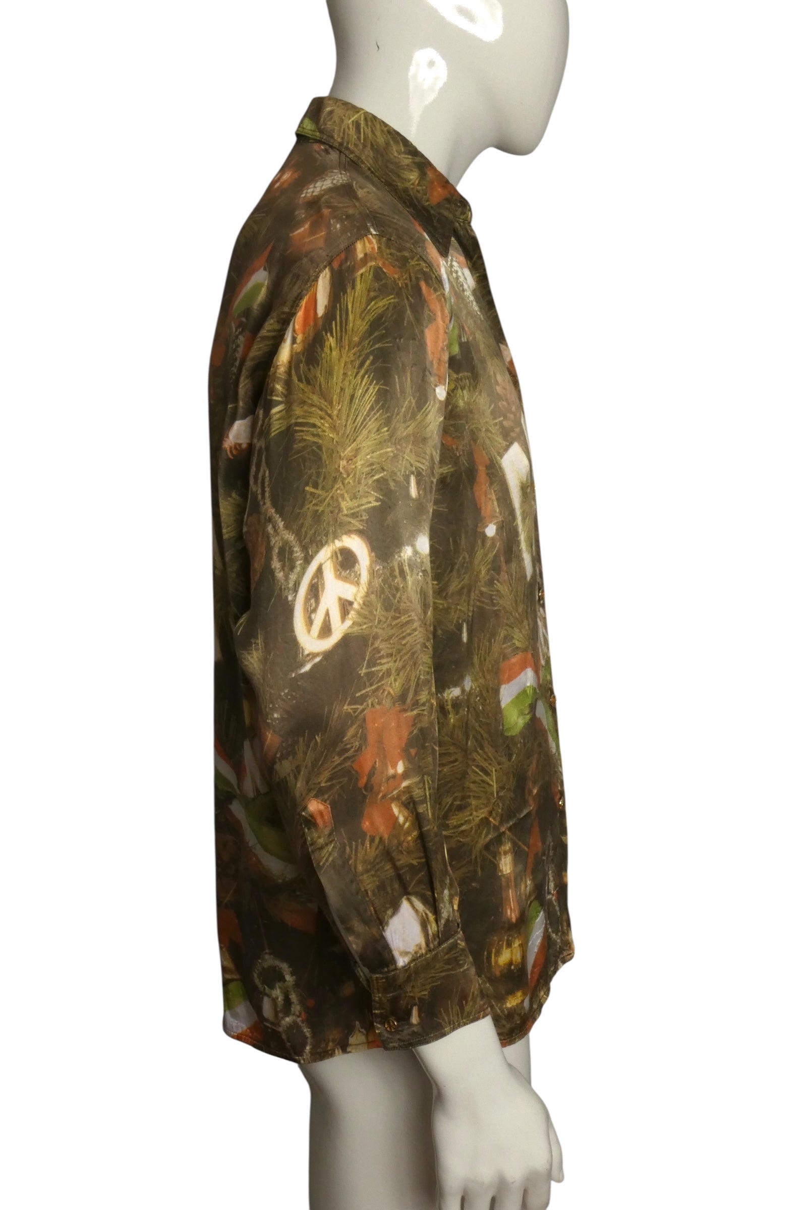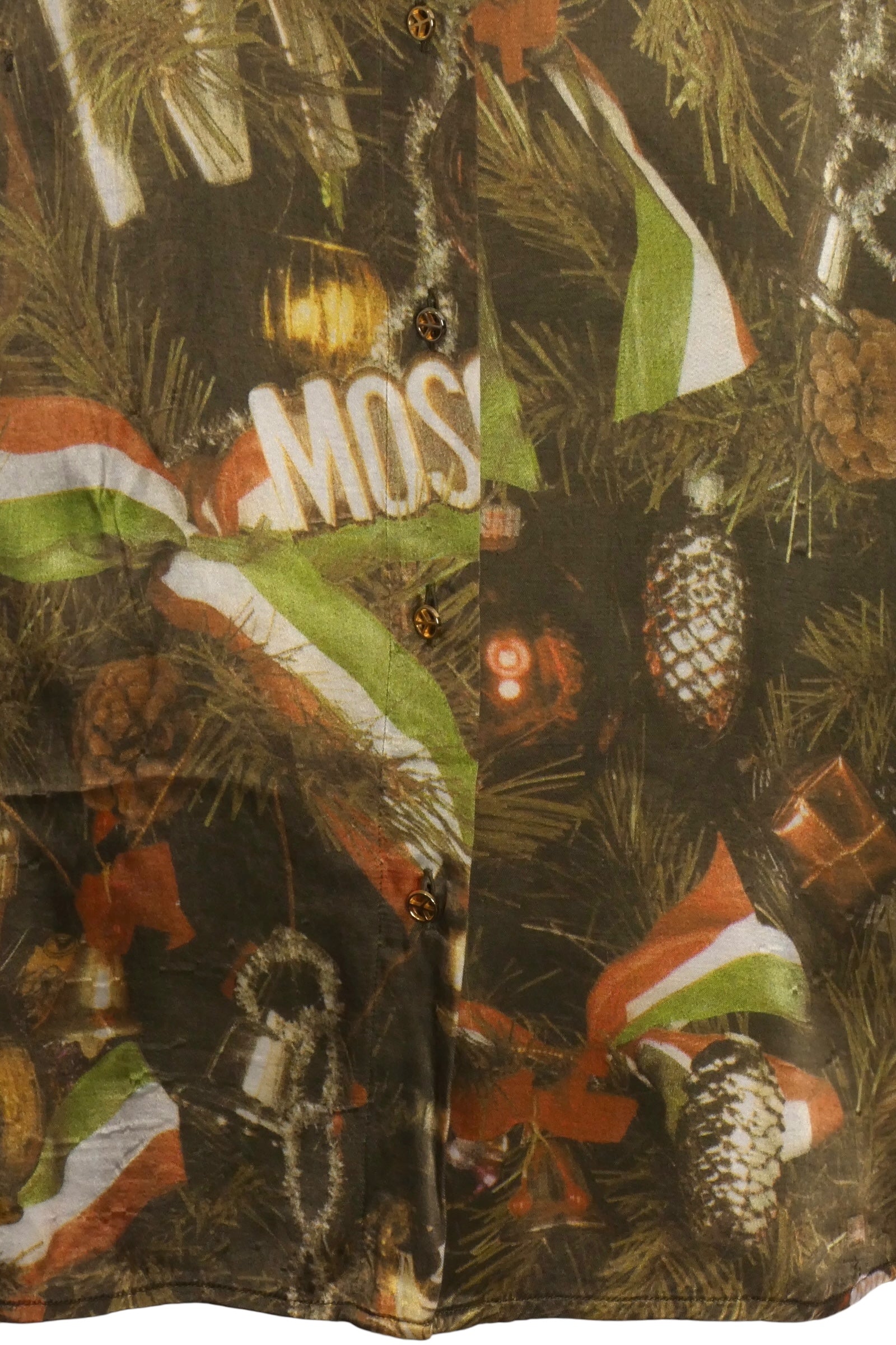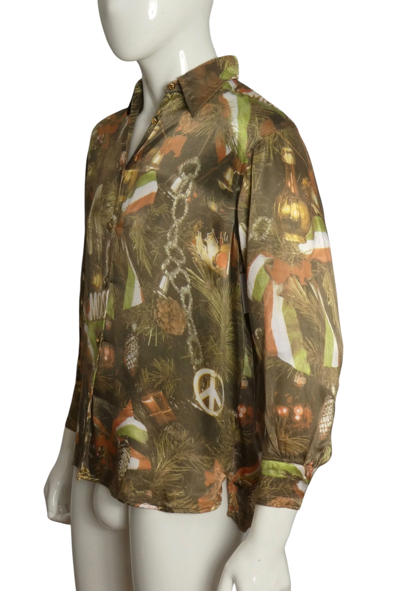 MOSCHINO JEANS- 1990s Christmas Tree Print Poly Shirt, Size Small