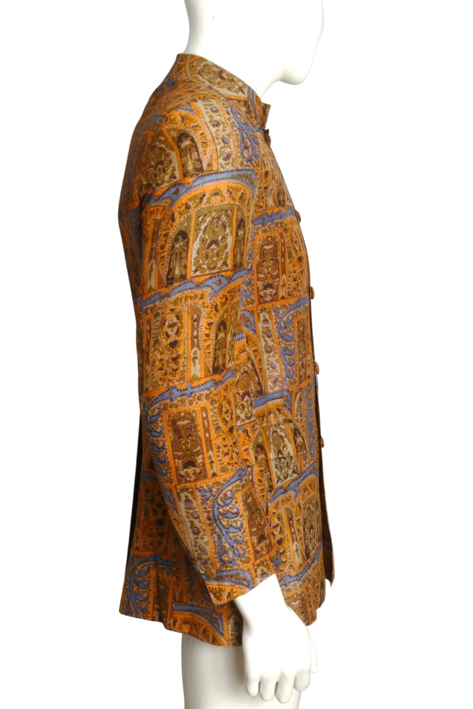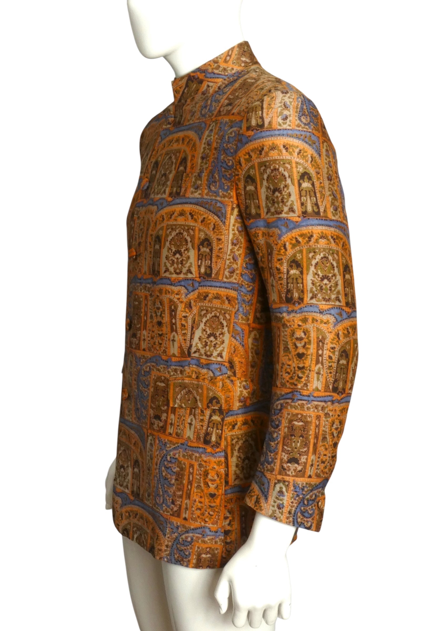 PIERRE CARDIN BOUTIQUE - 1960s Silk Print Nehru Jacket, Size-Medium