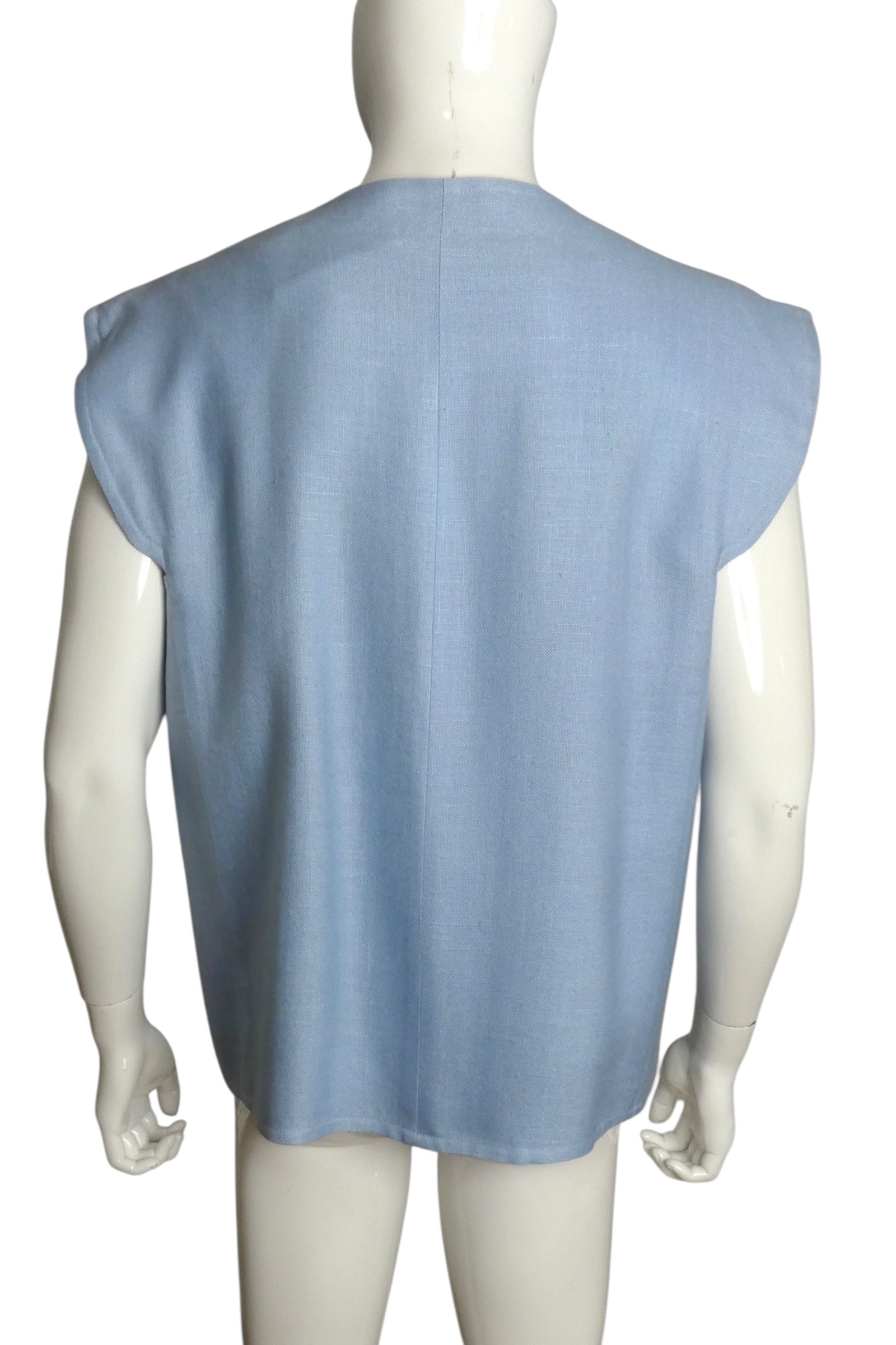 PIERRE CARDIN HAUTE COUTURE- 1980s Blue Rayon Vest, Size-Large
