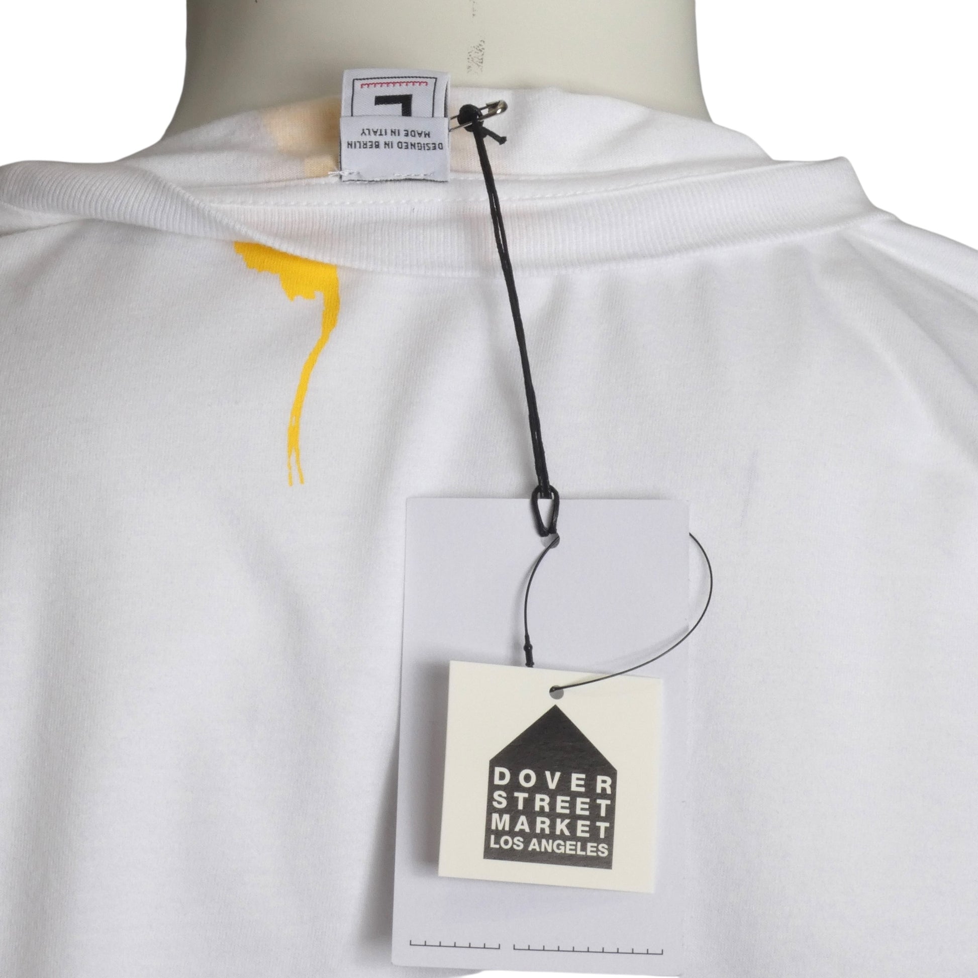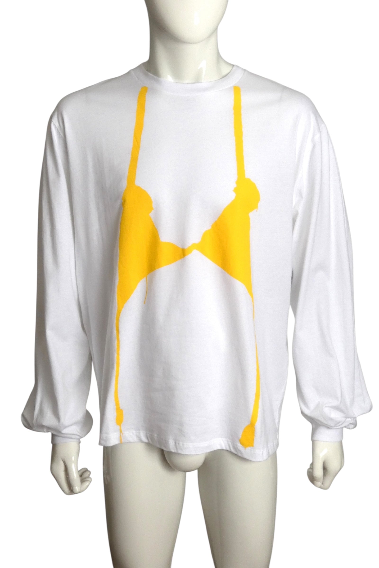 Description: This fun Random Identities long-sleeve tee in size large showcases a white and orange cotton fabric with a playful bikini top print on both front and back. It features a comfy round neckline, long sleeves, and a straight hem. Brand new with original tags, it’s never been worn—ready to bring a splash of quirky style to your wardrobe!