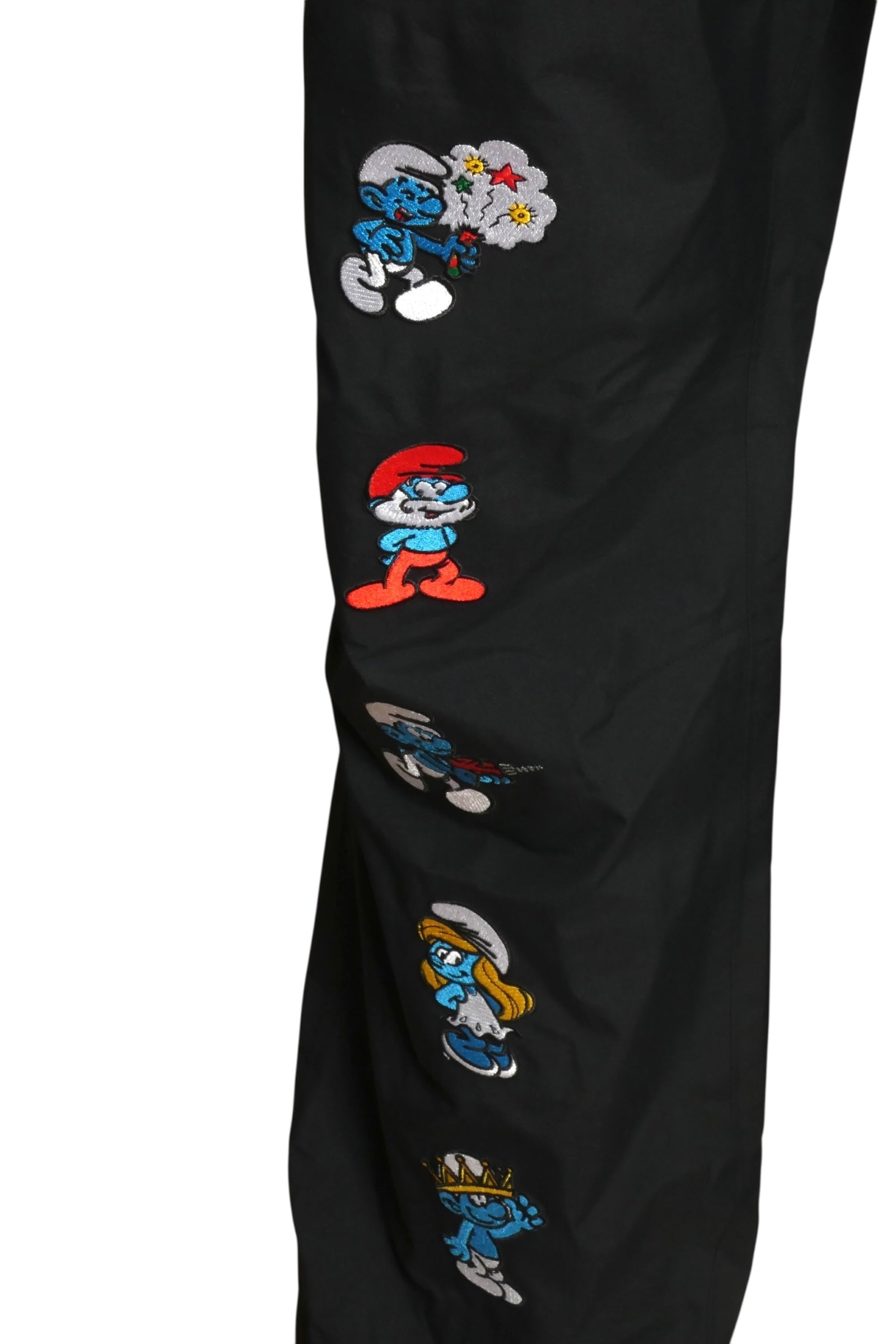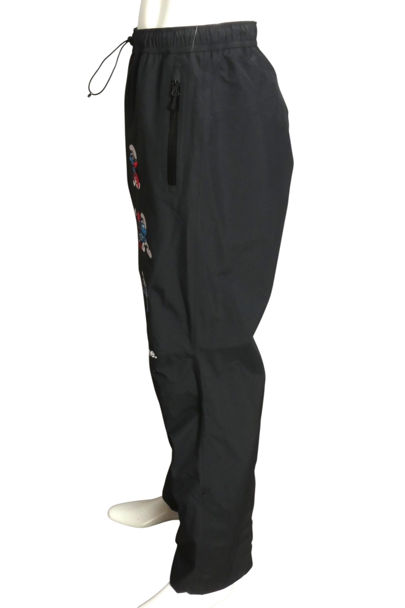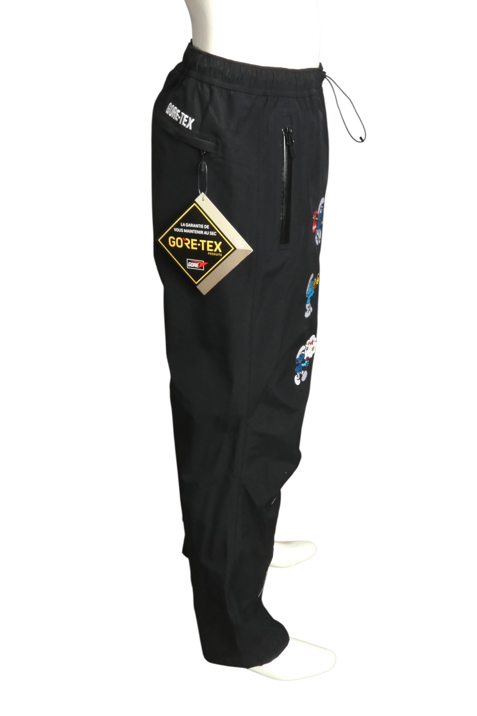 Description: Step into cozy style with these Supreme x Smurfs Gore-Tex trek pants from the fall/winter 2020 collection. Featuring a comfy elastic waistband and secure zippered side pockets, they’re perfect for everyday adventures. The playful Smurfs embroidery down the front adds a fun, nostalgic touch. Brand new with tags, these joggers in size Large blend practical waterproof fabric with charming character flair.