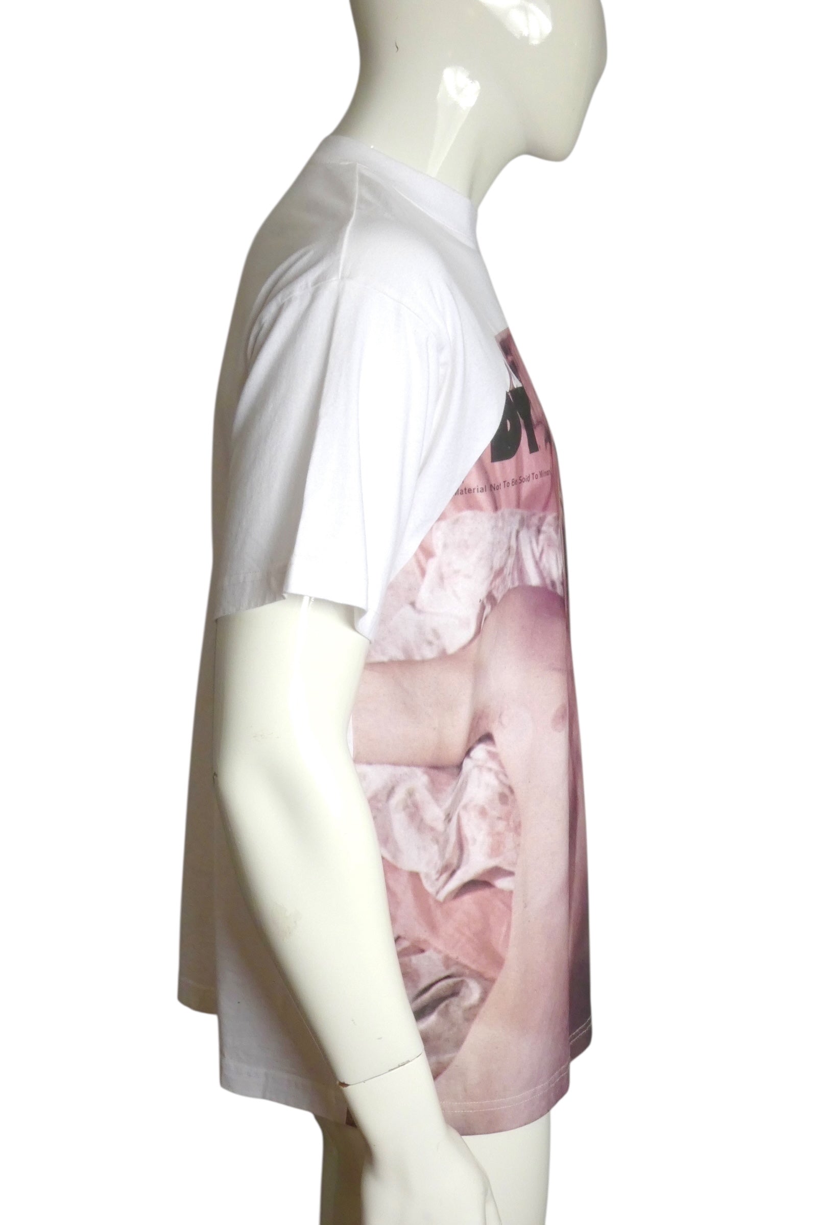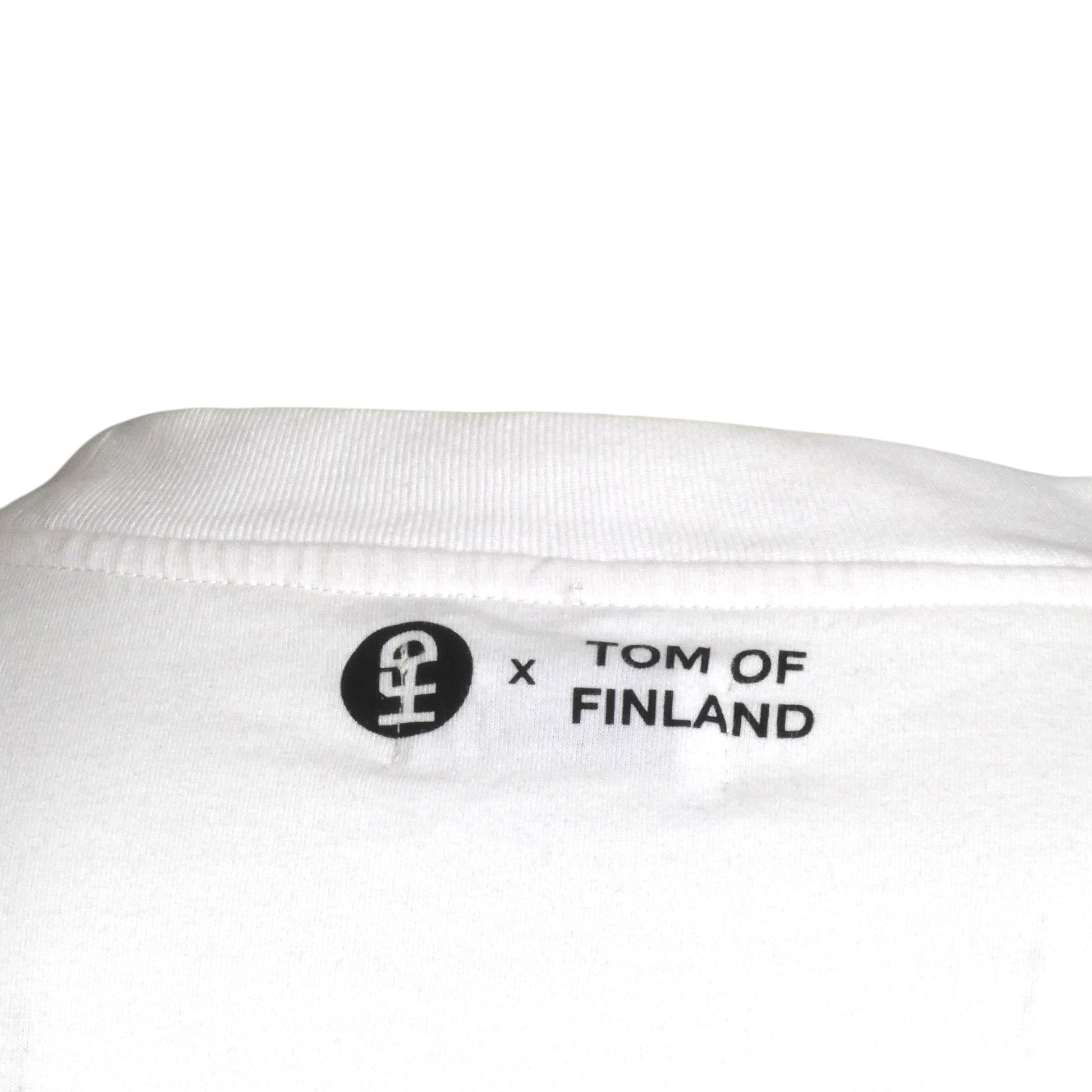 Description: Honey Fucking Dijon x Tom of Finland's 2022 collaboration is unapologetic celebration of queer iconography. The white cotton tee hosts vintage male nude imagery that refuses to hide, apologize, or soften its edges. This is art history meets streetwear—a direct homage to Tom of Finland's revolutionary legacy rendered in screen print. Size Small, unworn with original store tags still attached. Wear it as a statement of pride, provocation, and the radical act of claiming space for bodies and desires that have been marginalized for too long.