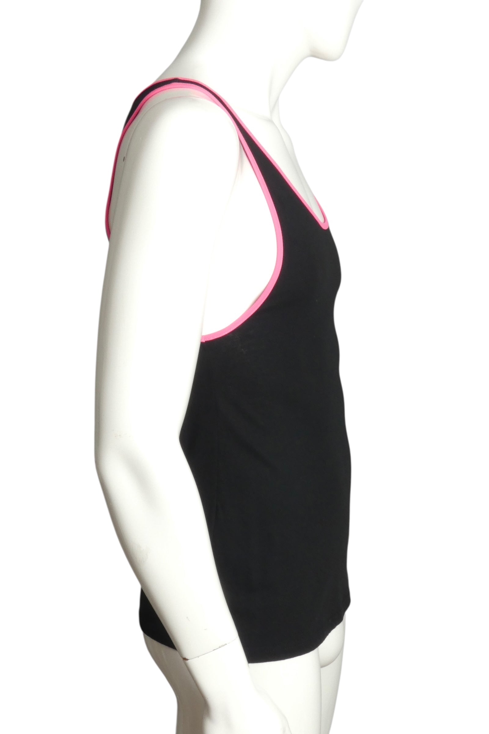 Add a pop of playful color to your summer wardrobe with this black cotton tank trimmed in vibrant hot pink. Perfect for sunny days, this lightweight and comfy top keeps you cool while turning heads. Brand new with tags still attached, it’s ready to join your collection and bring a splash of fun to any outfit.