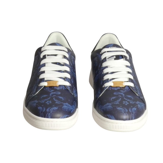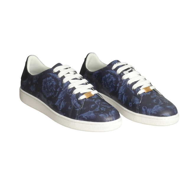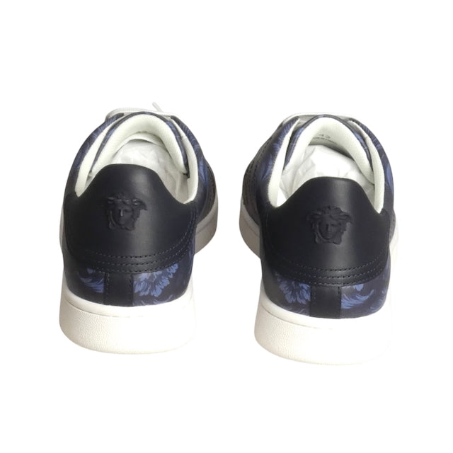 VERSACE-NIB Blue Print Leather Baroque Low Top Sneakers, Size 43