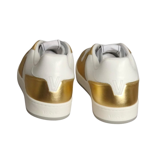 VERSACE-NIB White & Gold Low Top Sneakers, Multiple Sizes Available