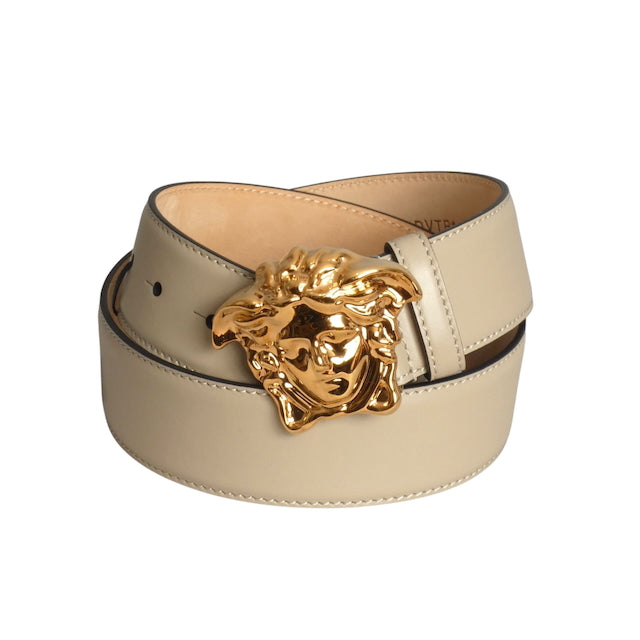 VERSACE- NWT Beige Medusa Head Leather Belt, Multiple Sizes Available