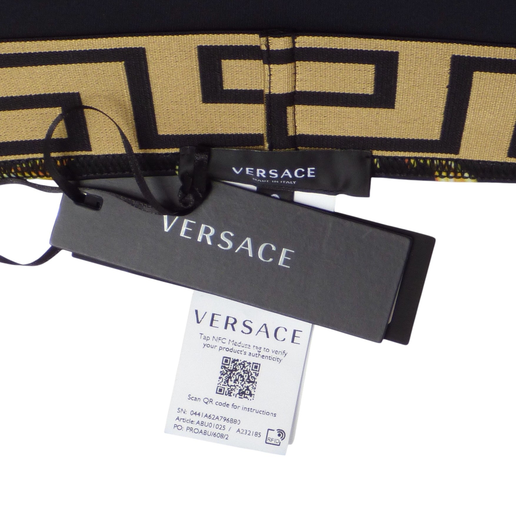 Description: Introducing the Versace swim brief in a comfortable and stylish option for your beach or pool days. Made with soft poly knit fabric, it boasts the iconic Greca design on the elastic waistband and a striking baroque pattern on the lining. Complete with the original store tags, immerse yourself in luxury with this swimwear.