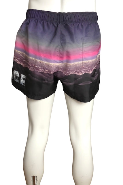 Description: Dive into style with these new Versace Hills swim trunks. Featuring a vibrant Hollywood Hills landscape at sunset, the iconic Hollywood sign is replaced by the Versace name for a bold twist. Designed for comfort, they include a drawstring waistband, side seam pockets, and an attached nylon brief. With the original tags still attached and priced at $625, these trunks bring a playful luxury to your swimwear collection.